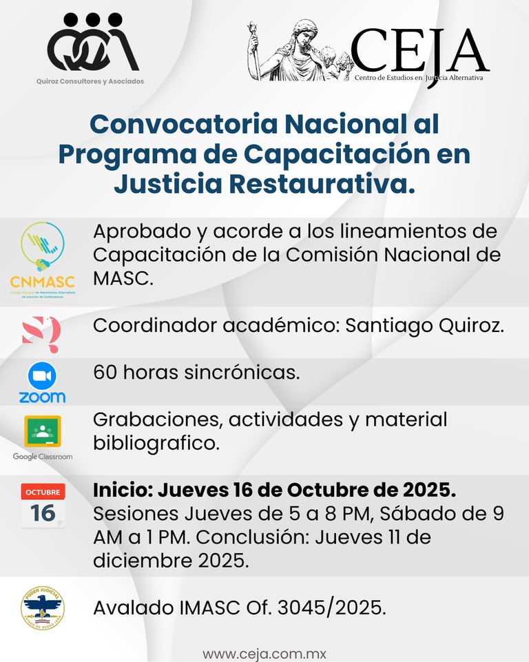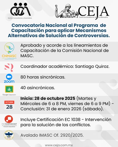 Formación, certificación y consultoría en MASC y justicia restaurativa.